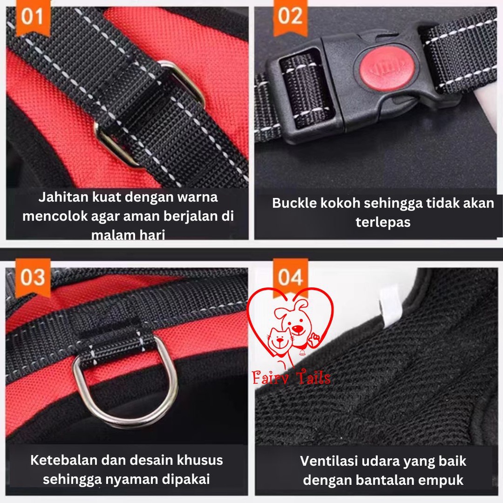 Detail Harness Tali Tuntun Anjing Kucing Rompi Bahan Nilon Adjustable / Pet Harness Breathable Vest with Leash for Dog and Cat