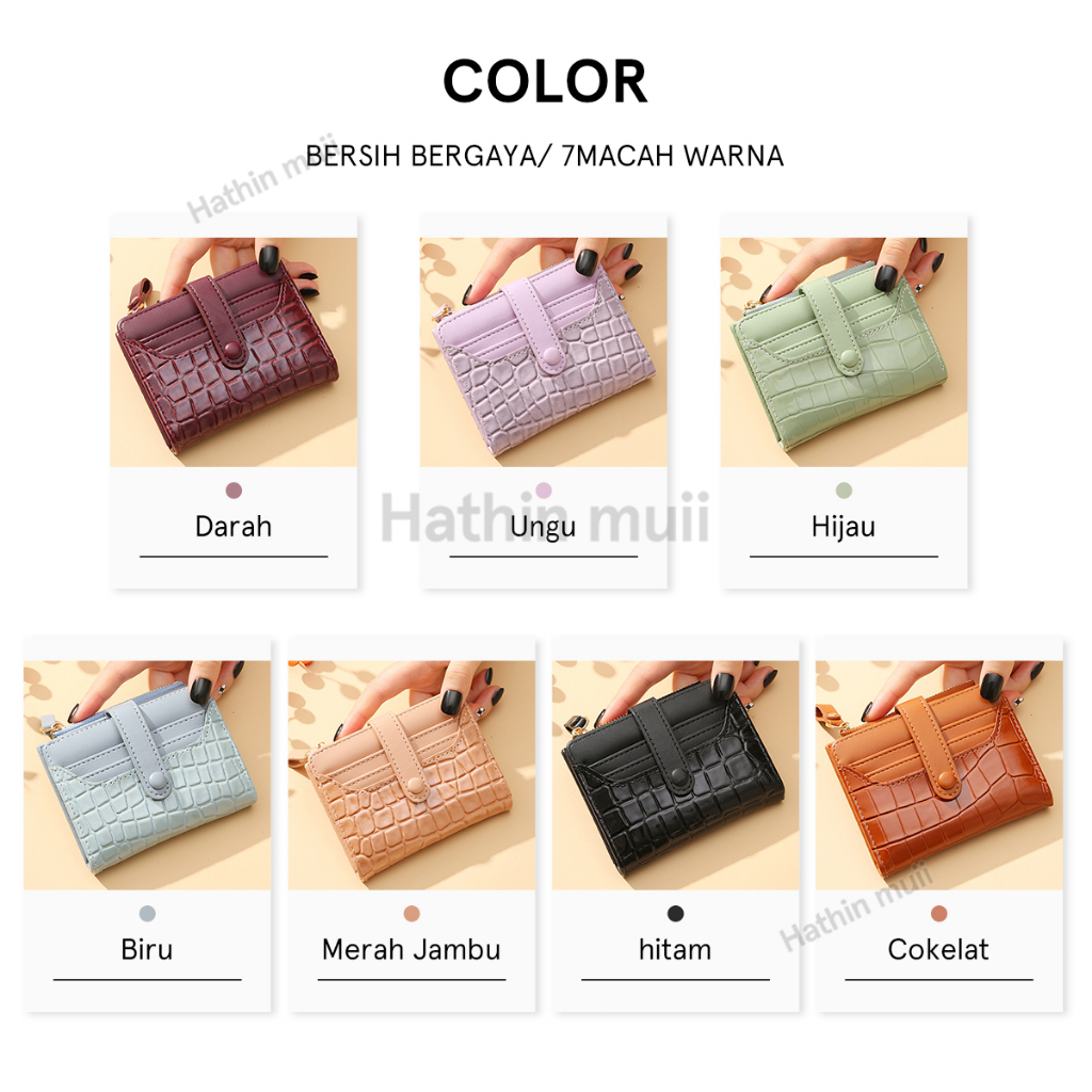 Detail Hathin muii Genie Wallet Dompet Wanita Original Realpic Croco leather Dompet Lipat bisa Cod35