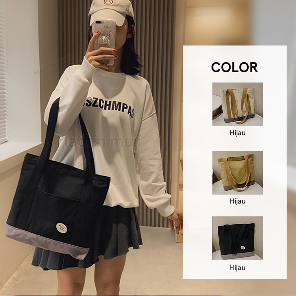 Nama Merek: Hathin Muill Bahan: Kanvas Berat: 0.21kg Fungsi: bahu/tangan harus Ukuran: Lebar 34 Tinggi dan 30 tebal 6 cm Tali bahu: 80cm (penyimpangan)