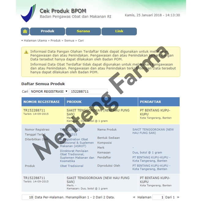 Perhatian : Selama pakai obat ini jangan makan kacang-kacangan, ikan, dan udang