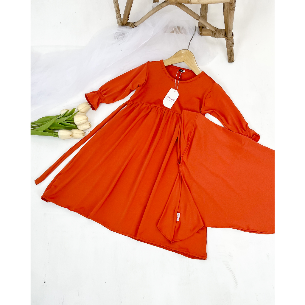Gamis set plus kerudung, best seller banget ini, sudah terjual puluhan ribu pcs, dan skrng hadir dgn warna dan bahan spandex, yg pasti dijamin nyamannya kebangetan buat sikecil.