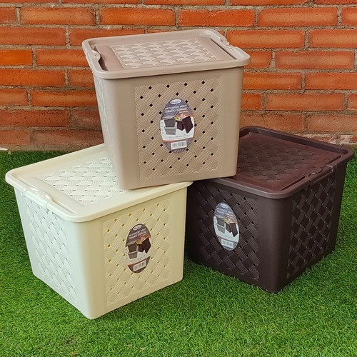 Detail: - Keranjang - Warna White,Coklat Tua, Coklat Muda - Material plastik - Dimensi 32x 31 x 26cm