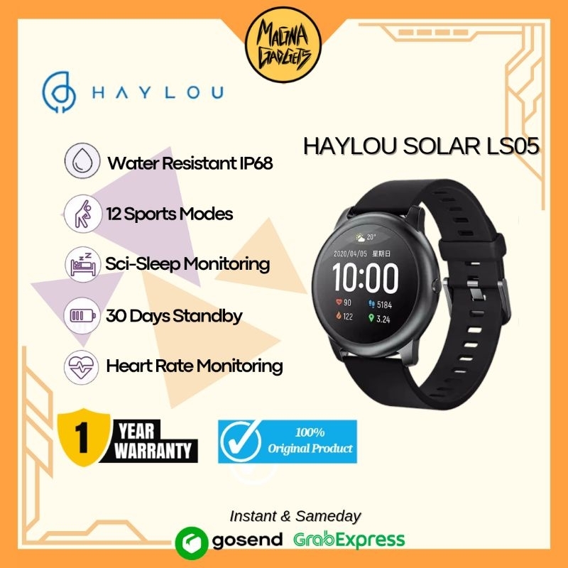 Smartwatch Haylou Solar LS05 Original Free Screen Protector Global Version Garansi 12 bulan Tersedia varian warna hitam . Features: - TFT high-definition screen brightness - Cool the metal block - 30 days standby lasting, farewell electricity anxiety - 12 Sport Modes, wanton reckless movement - IP68 waterproof - Monitoring accuracy and then break to make evidence-based health tracked - Science-based sleep management of big data, in-depth analysis to help you fall asleep soundly - All-day continuous heart rate monitor, always pay attention to heart health