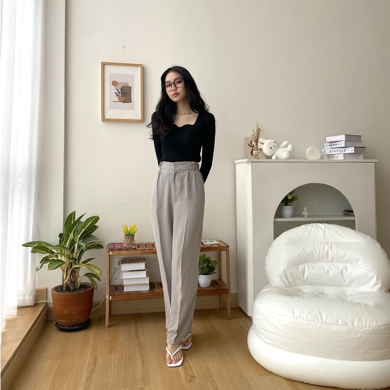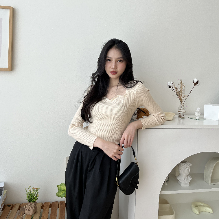 Detail Hazel Top - Blouse Korean Wanita - Atasan Rajut - Long Sleeve Top