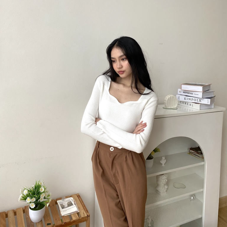 Hazel Top Bahan : Knit Available in : Black | Brown | White | Cream | Emerald