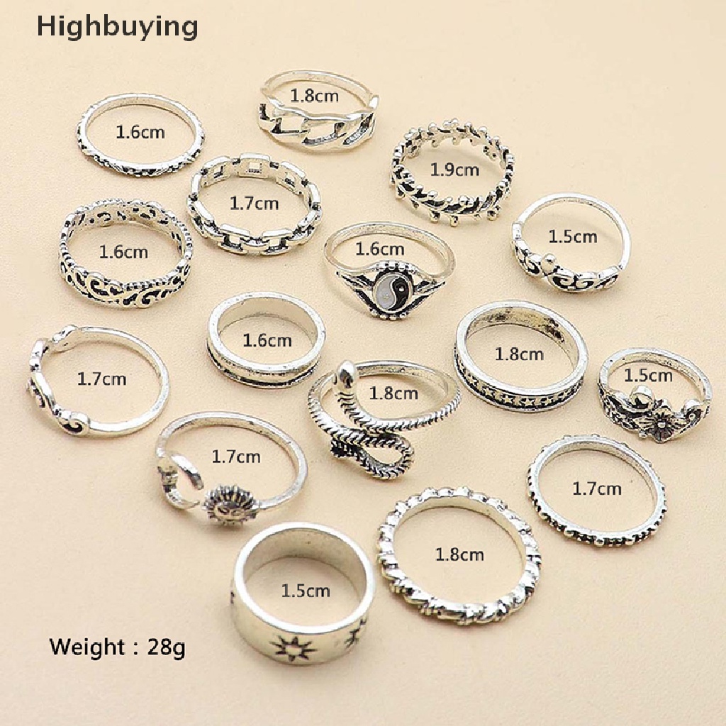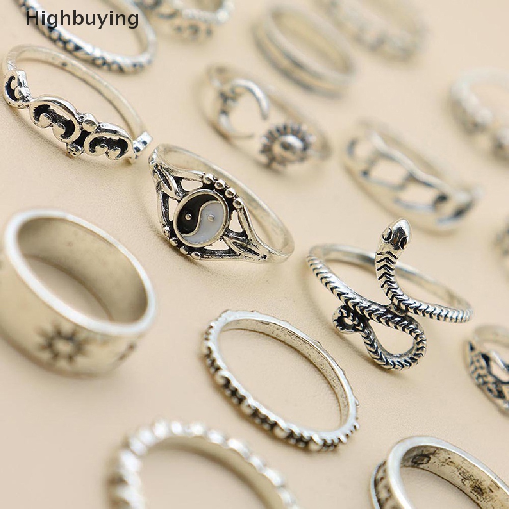 Detail Hbid 16 Pcs Tren Gaya Temperamen Perhiasan Kepribadian Perempuan Retro Alloy Ular Bulan Gosip Matahari Cincin Set Glory