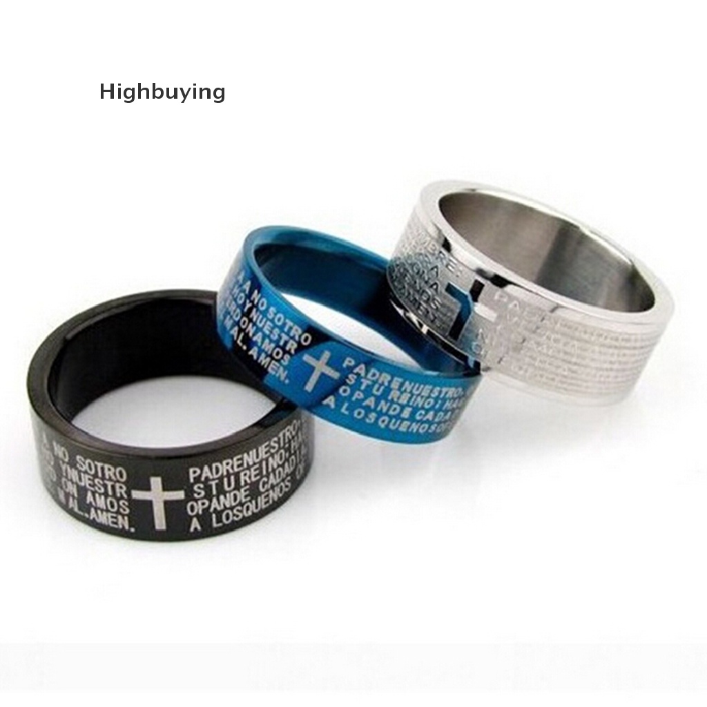 Detail Hbid 1pcs Cincin Silang Teks Alkitab Cincin Perhiasan Titanium steel Untuk Wanita Pria Glory