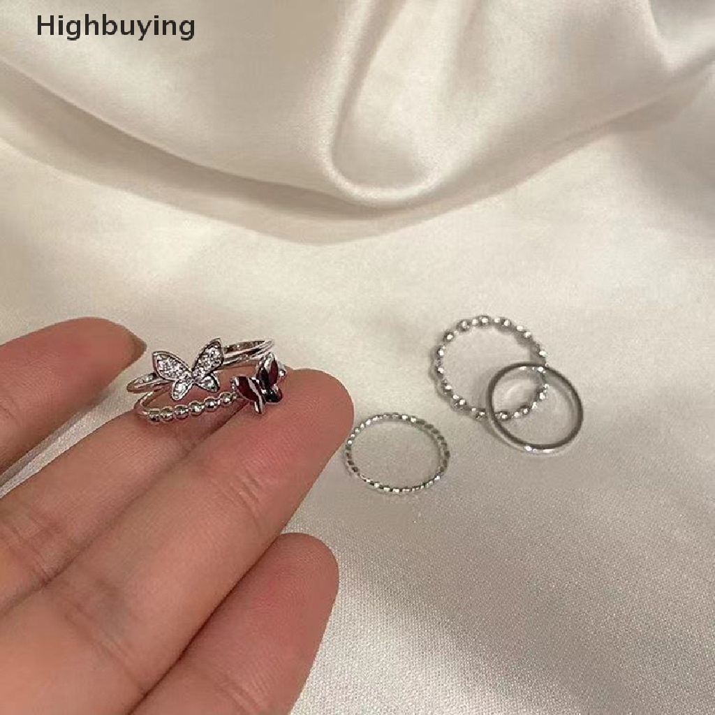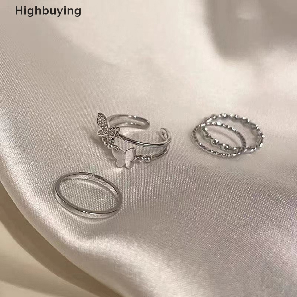 Detail Hbid 3 Pcs/4 Pcs Hip Hop Punk Terbuka Dapat Disesuaikan Cincin Set Wanita Cincin Kupu-Kupu Logam Jari Cincin Glory