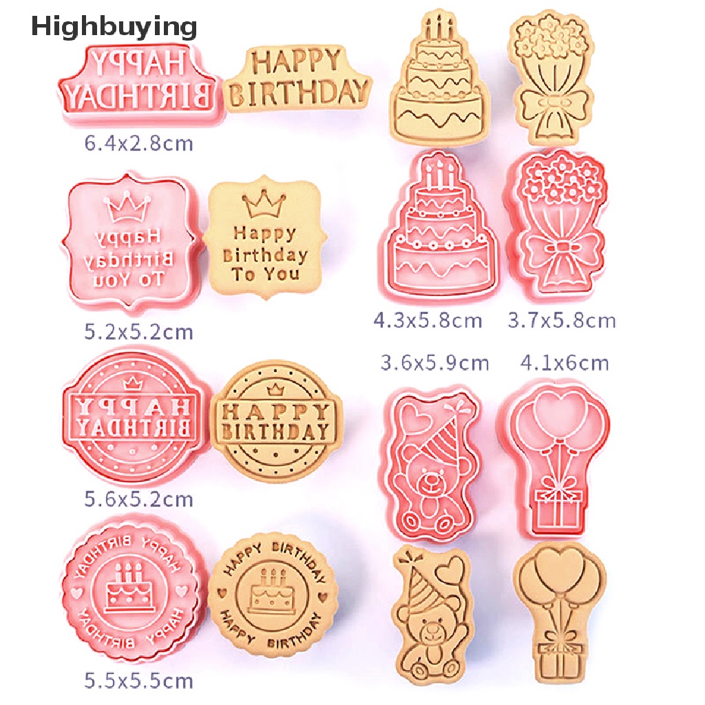 Hbid 8Pcs/Set Ulang Tahun Tema Cookie Pemotong Plastik 3D Pressable Biskuit Cetakan Cookie Cap Dapur Baking Alat Pesta Ulang Tahun Anak Dekorasi Glory