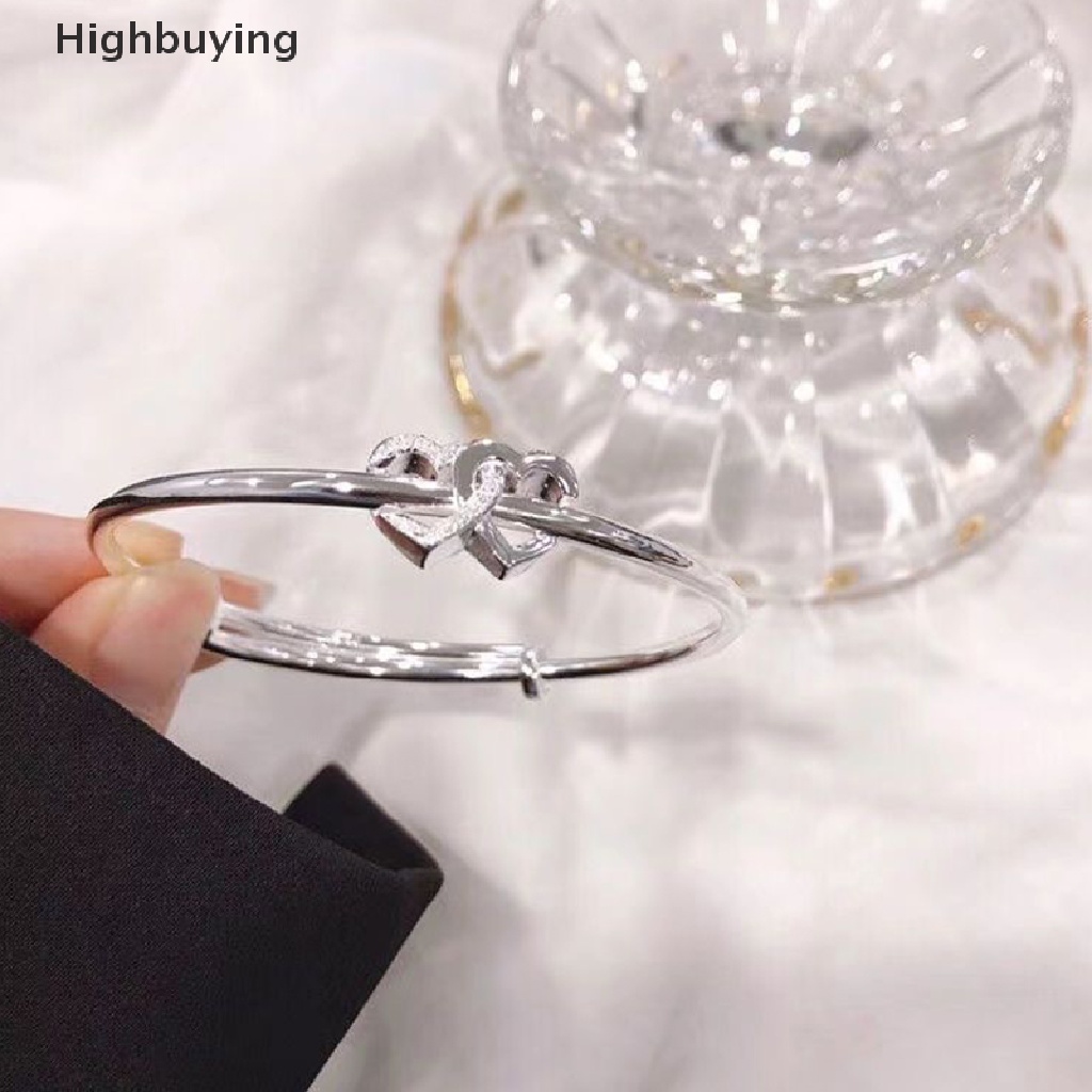 Hbid Fashion Double Heart Adjustable Bangle Fashion Warna Perak Kepribadian Sederhana Gelang Untuk Wanita Gadis Persahabatan Perhiasan Hadiah Glory