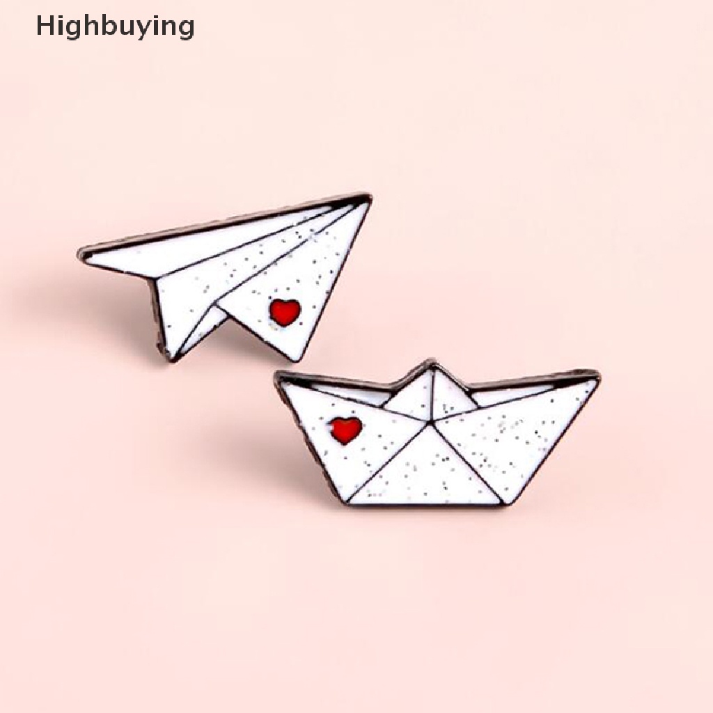 Hbid Kartun Enamel Pesawat Kertas Perahu Bros Kerah Pin Lencana Tas Aksesoris Perhiasan Glory