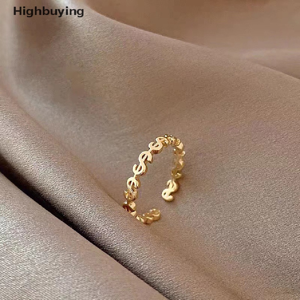 Aksesoris Fashion > Cincin > Hbid New Gold Color Trend Dollar Sign Ring Opening Adjustable Rings Fashion Punk Hip Hop Jewelry Daily Simple Wedding Brides Party Finger Ring Glory