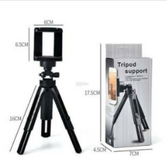 Tripod Support Mini merupakan perangkat pendukung bagi anda yang memiliki hobi memotret dengan HP/smartphone/kamera digital yang berfungsi agar pada saat memotret bisa lebih stabil/steady sehingga hasil foto lebih maksimal & mengurangi efek blur/kabur. Dapat digunakan untuk semua jenis smartphone .Tripod dengan tiga-kaki yang dapat diatur ukuran panjangnya hingga 5 level.Posisi HP bisa diatur horisontal / vertikal.Braket dapat diputar 360 derajat.Jepitan kuda-kuda berdiri tripod lebih kokoh, bila dibandingkan Tripod HP yang ada sebelumnTripod yang sangat praktis dan simpel.