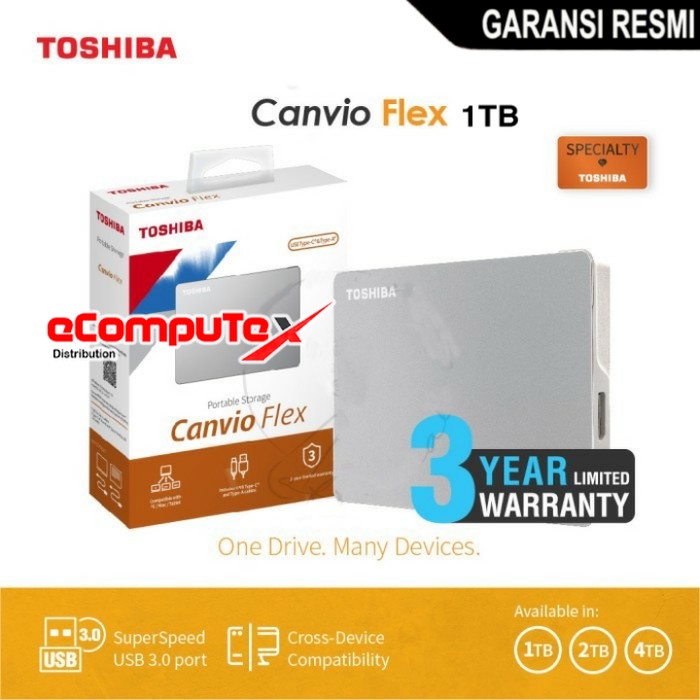 Detail HDD EXTERNAL TOSHIBA CANVIO FLEX 1TB 1 TB USB 3.2 HARDDISK 2.5" GARANSI RESMI