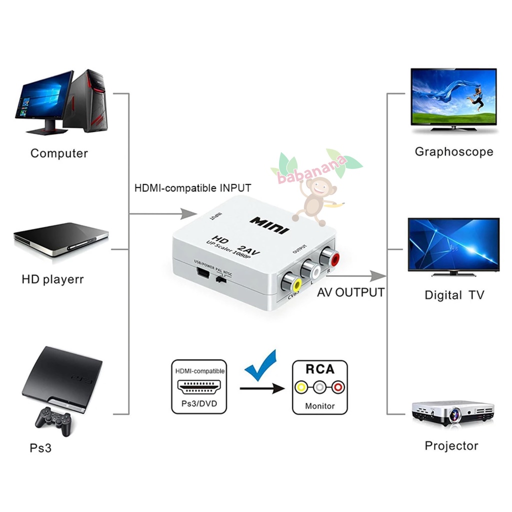 Elektronik > Perangkat Audio & Speaker > Kabel & Konverter Audio & Video > HDMI TO RCA ANALOG CONVERTER HDMI INPUT RCA OUTPUT DISPLAY ADAPTER