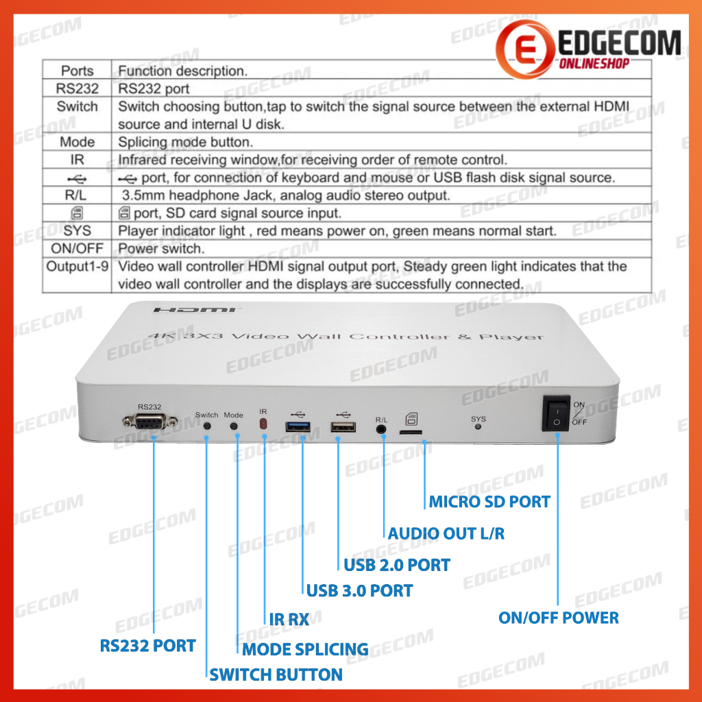 HDMI 3X3 WALL CONTOLLER & MEDIA PLAYER 4K 13 MULTITYPE DISPLAY MODE