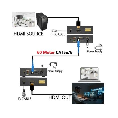 HDMI extender adalah alat yang berupa sepasang konverter dengan fungsi membuat kabel LAN UTP cat 5/6 sebagai pengganti fungsi Kabel HDMI. Sepasang konverter ini terdiri dari Sender (pengirim) dan Receiver (Penerima).