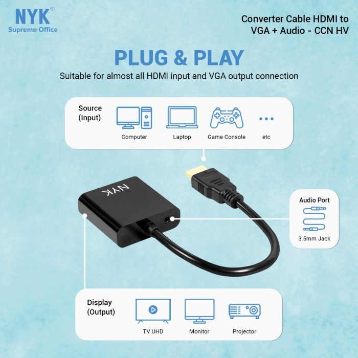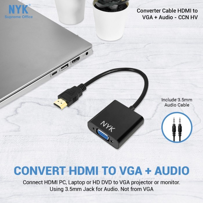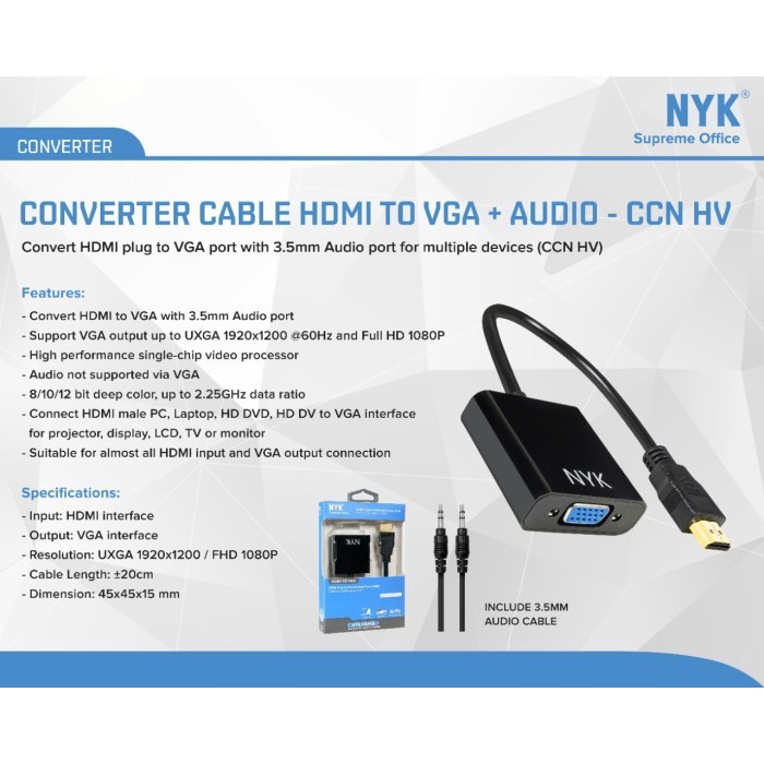 Elektronik > Perangkat Audio & Speaker > Kabel & Konverter Audio & Video > Hdtv to vga 3.5mm audio converter Nyk supreme 1080p 60hz FHD for pc laptop dvd stb - Konverter hdtv male to d-sub female 15 pin