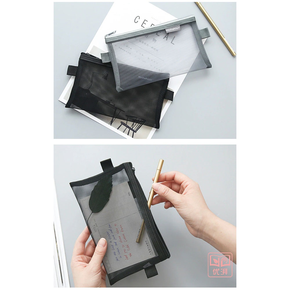 HE Tas Make Up Kosmetik Transparent Mesh Flat Transparan - Black alat tulis perlengkapan kecantikan kotak makeup tas serbaguna