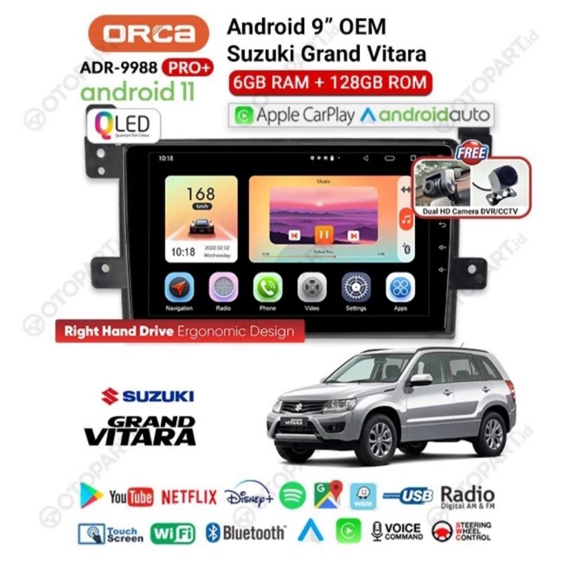 Otomotif > Aksesoris Interior Mobil > Navigasi & AV Receiver > Head Unit Android 9" ORCA RAM 6GB / 128GB SUZUKI GRAND VITARA ANDROID 9 inch ORCA PRO RAM 6/128GB CARPLAY
