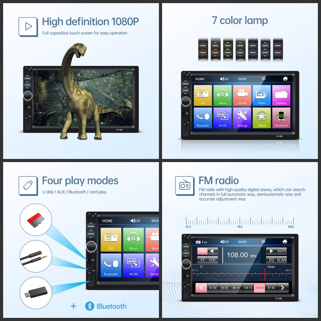 Video perkenalan produk Head Unit Double Din 7 Inch Bluetooth Audio Car MP5 Player In Touch Screen Radio Dan Kamera Mundur Mobil LED. Sumber: Shopee.