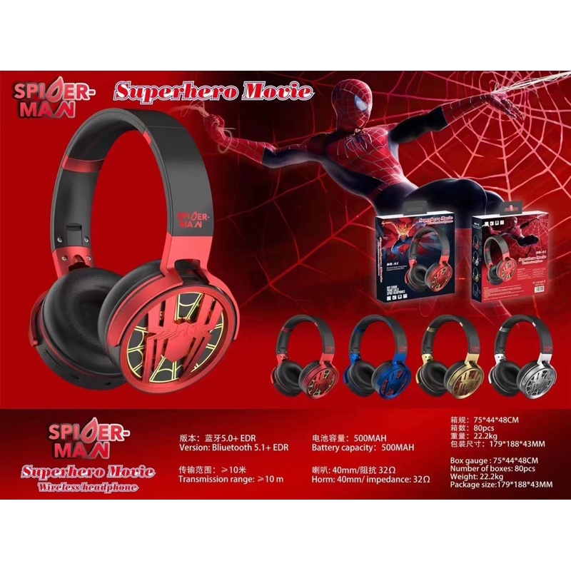 Detail HEADPHONE BLUETOOTH / WIRELESS LOGO SPIDER SERI DR 64