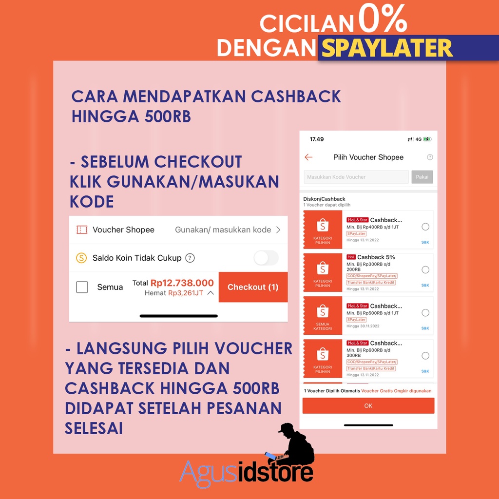 - Setiap pembelian di agusidstore bisa dapat CASHBACK HINGGA 500RB