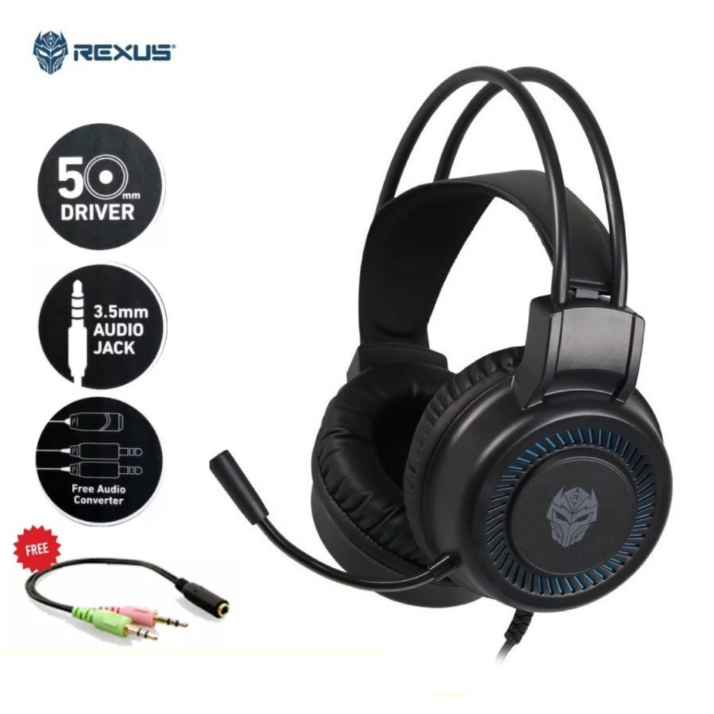 SPESIFIKASI HEADPHONE Jenis headset : Gaming headset (Microphone + audio) Brand : Rexus Model produk : F27 Diameter speaker : 50mm Sensitivitas : 115dB Hambatan : 32W Rentang frekuensi : 20 – 20.000Hz Panjang kabel: 2,1 meter Konektor : Jack tunggal 3,5mm, model L