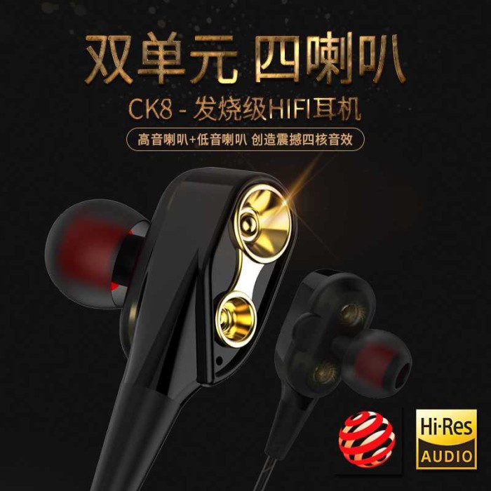 QKZ-CK8 merupakan earphone dengan teknologi Dual Driver yang terdiri dari 1 buah 8mm mid-high moving coil dan 1 buah 10mm heavy bass moving coil pada masing-masing earphone. Berkat perduan 2 driver ini membuat earphone ini dapat menghasilkan suara mid, high yang sangat jernih dan bass yang sangat deep dan punchy. Design in-ear juga membuat earphone ini sangat nyaman untuk anda gunakan.