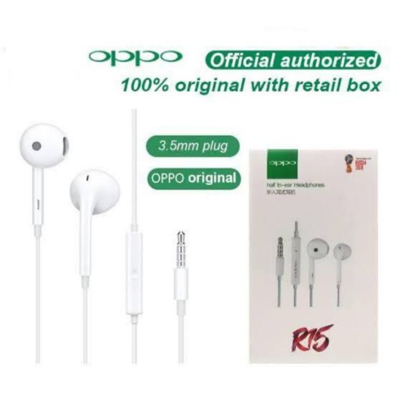 Handphone & Aksesoris > Audio Handphone > Earphone, Headphone & Headset > Headset OPPO R15 Handsfree Earphone OPPO R15 Mega Bass