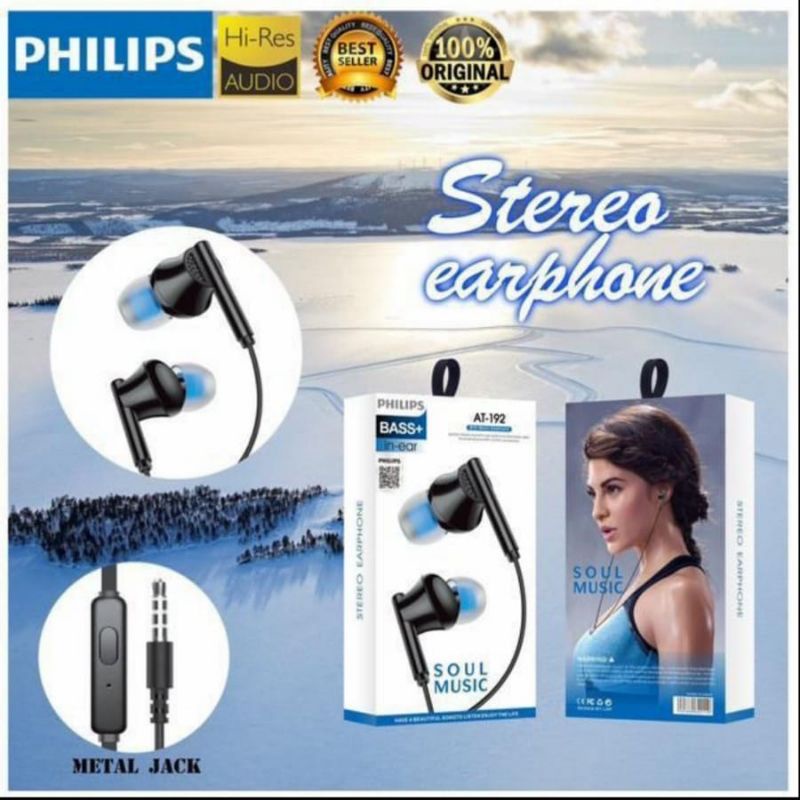 Handsfree PHILIPS AT-192 BASS+ AT192 Stereo Earphone Universal