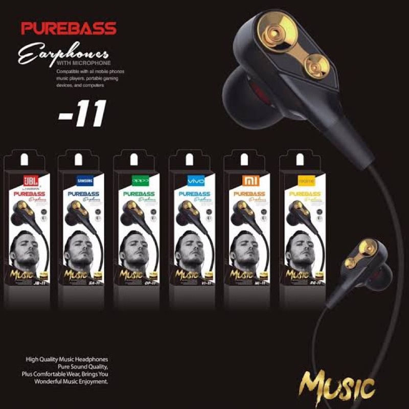 Headset Pure Bass JB11 SuperBass Premium HF Brand JB11 SUARA BAGUS
