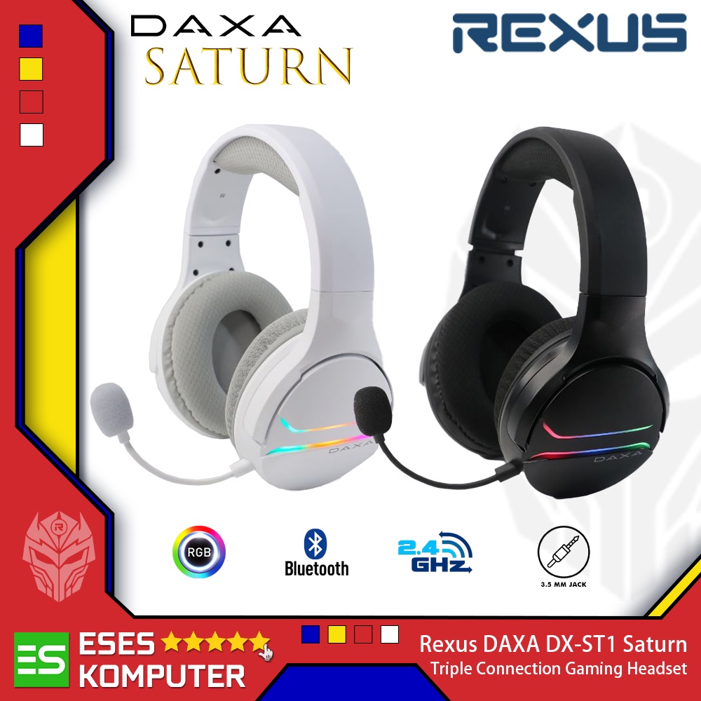 Spesifikasi : Bigger Driver Speaker, 50mm Diameter Powerful Sound with Rich Bass and Clarity Mid Bigger Battery Capacity, 1000mAH Polymer Lithium Battery Playing Time up to 15 hours (Without LED) Compatible to Multi-Device: 2.4Ghz (PS4, PS5 , Switch, PC/Mac, Smart TV, Android), Bluetooth (Android, iOS, Laptop), 3.5mm (Xbox and All Device with Aux 3.5mm Port) Lightweight Gaming Headset, Only 311 gram Fabric Material Earpad for More Comfort and Longer Usage 8 Modes of Double Stripe RGB LED Light (Including LED off) Easy Control Panel: Mute, Volume Change Connection, LED on Headset