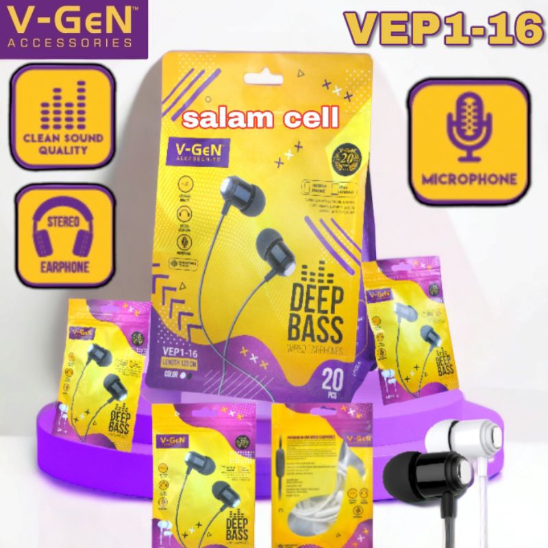 Headset V-GEN VEP1-16 Wired Earphone Headset Deep Bass Original Vgen Vep1 16