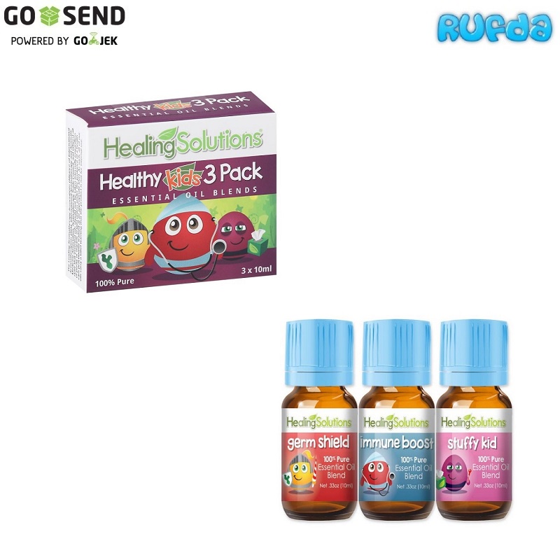 Healing Solutions Healthy Kids 3 Pack terdiri dari tiga essential oil yang berkaitan dengan kesehatan anak. Produk ini memang diramu khusus untuk anak/bayi agar aman digunakan.