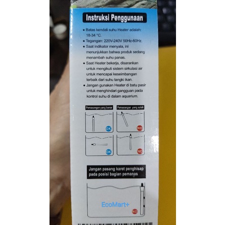 Heater Aquaman Type : WP-HT-304-STA Daya : 50 watt Panjang Batang Stainless : 16 cm Panjang keseluruhan : 23 cm Sistem celup/submersible