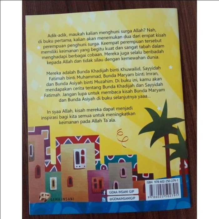 Mereka juga selalu beribadah kepada Allah dan tidak silau dengan kemewahan dunia. Mereka adalah Bunda Khadijah binti Khuwailid Sayyidah Fatimah binti Muhammad Bunda Maryam binti Imran dan Bunda Asiyah binti Muzahim. Di buku ini kamu akan mendapakan cerita tentang Bunda Khadijah dan Sayyidah Fatimah.