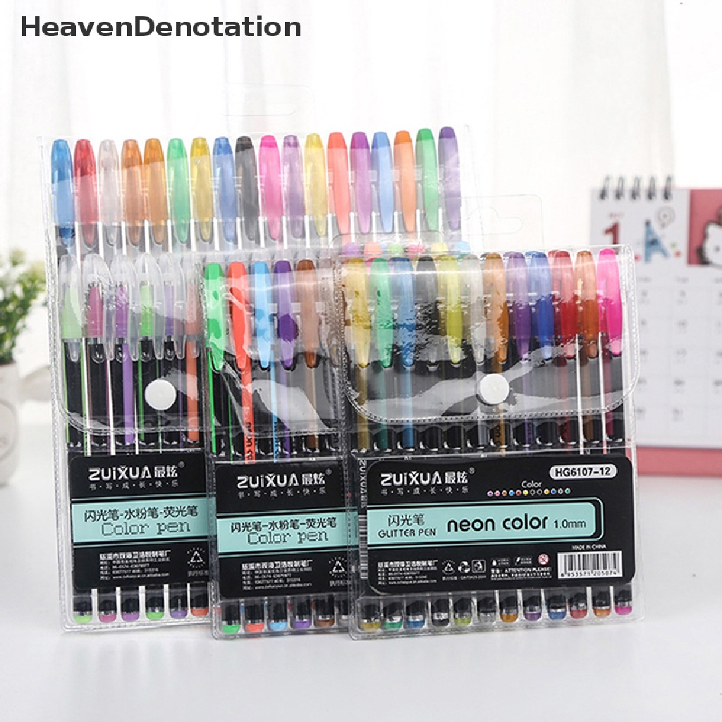 Buku & Alat Tulis > Alat Tulis > Pulpen & Tinta > [HeavenDenotation] 12 /18 /24 /36/48Pcs Warna Glitter Sketsa Gambar Color Pen Marker Gel Pen Set Isi Ulang Rollerball Pastel Penanda Neon Alat Tulis Kantor Sekolah HDV