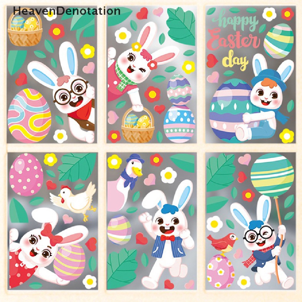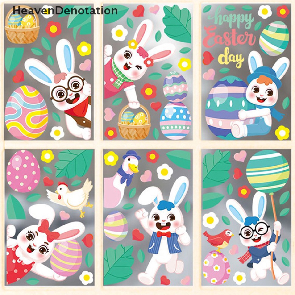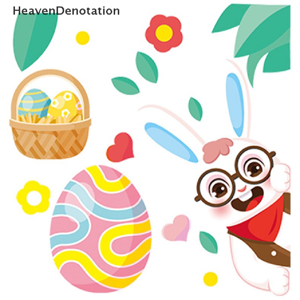 [HeavenDenotation] 1pc Stiker Jendela Kaca Happy Easter Colorful Bunny Eggs Wall Sticker 20x30cm HDV