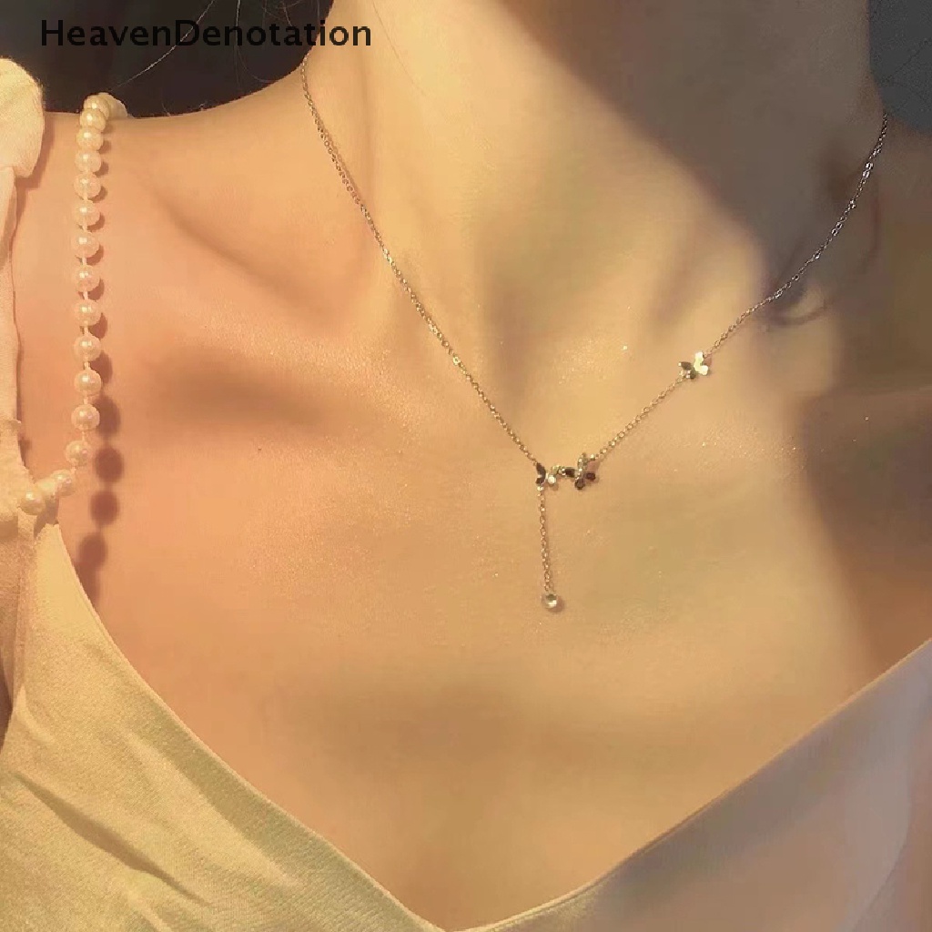 Detail [HeavenDenotation] Baru Kalung Kupu-Kupu Untuk Wanita Lucu Shiny Zirkon Klavikula Rantai Kalung Liontin Choker Vintage Perhiasan Kantor Hadiah Sehari-Hari HDV