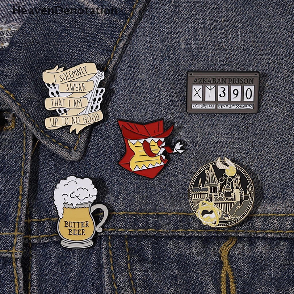 [HeavenDenotation] Magic World Enamel Pin Tiket Kereta Kacamata Hitam Howler Bros Kerah Lencana Penyihir Penyihir Penyihir Perhiasan Hadiah Untuk Teman Anak HDV