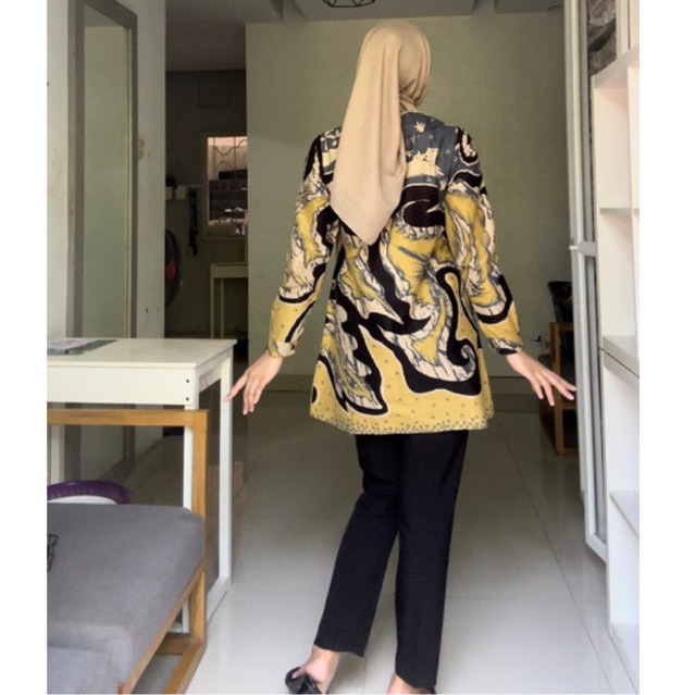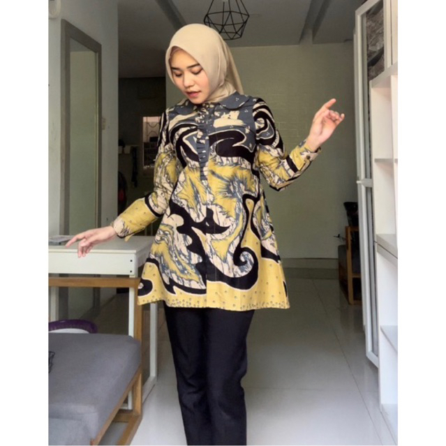 Detail HEDIA Tunik Blouse Atasan Batik Kerja Kantor Wanita Modern Kekinian Print Katun Abstrak