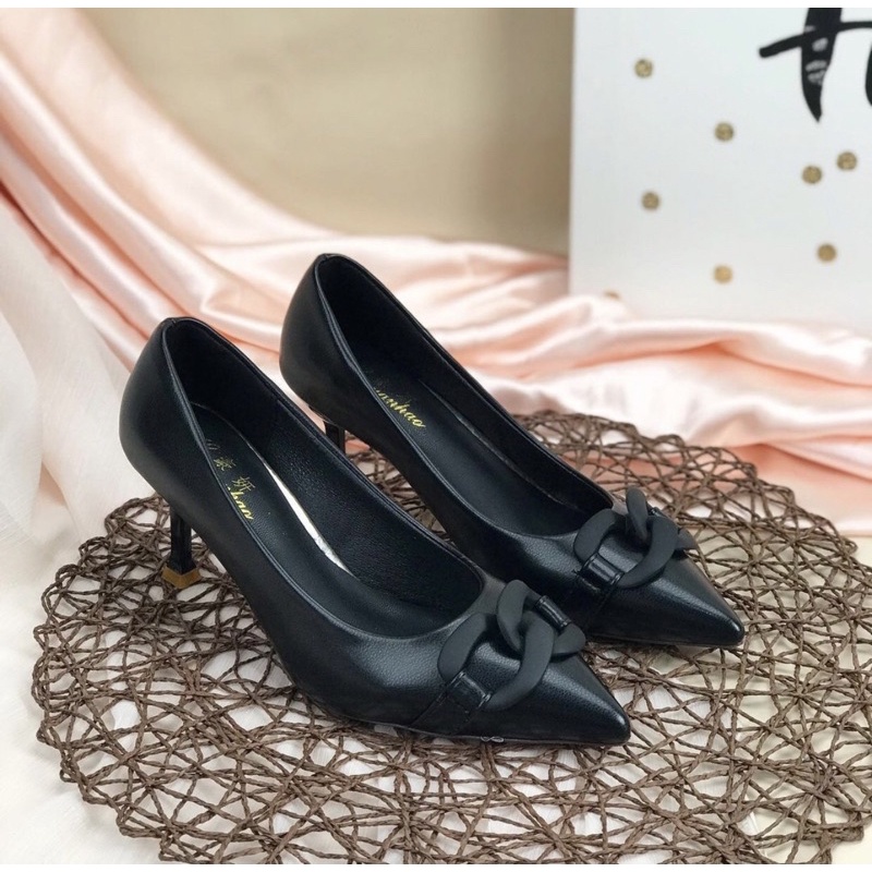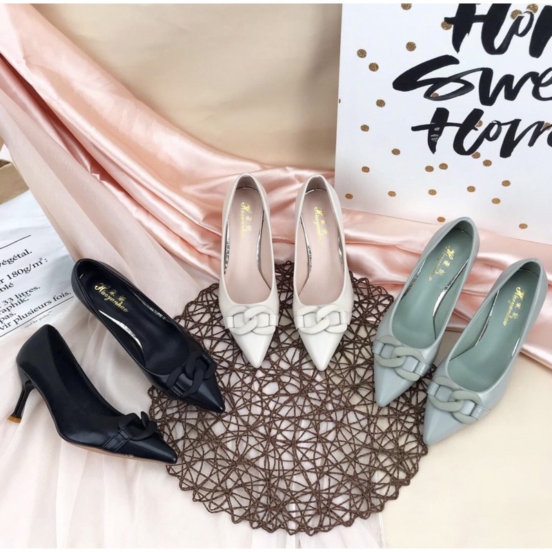 KODE : C102 HARGA : Rp.250.000 UKURAN : 35-39 Tinggi 7cm WARNA : black,cream & green