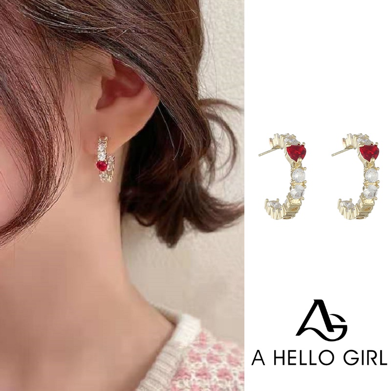 Detail Hello Anting Tusuk Berlian Imitasi Bentuk Hati Warna Merah Untuk Wanita 2022