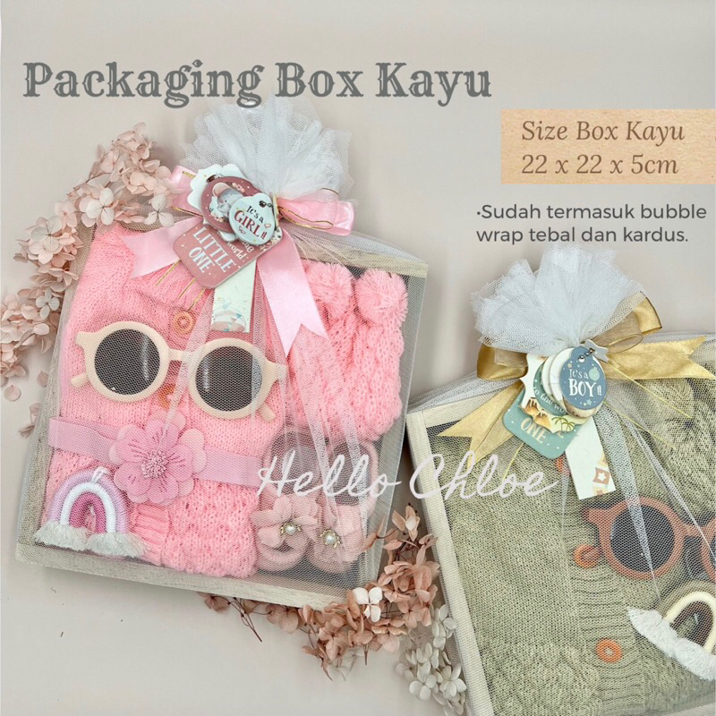 ✔️BOX KAYU +soft tulle atau EXCLUSIVE HARDBOX tebal,mewah dan kokoh berwarna pink girl/silver boy atau STICKER LOVE BOX sesuai pilihan pembeli mau pilih packing yang mana ya ka. ✔️Pita cantik. ✔️Kartu ucapan tag artcraft 1 set isi 5pcs. ✔️Bubble wrap boba tebal. ✔️KARDUS PACKAGING sehingga aman sampai tujuan. ✔️Lakban fragile.