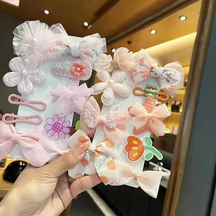 Aksesoris Fashion > Aksesoris Rambut > Jepitan & Pin Rambut > (Hello Girl) F157 Jepit Rambut Anak Set 10 IN 1 Jepit Rambut Anak Motif Pita Bunga Gaya Korea Import