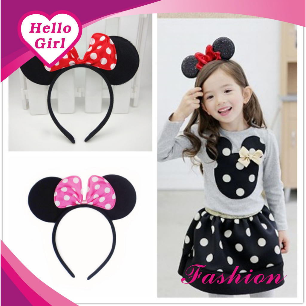 Detail (Hello Girl)B60 Bando Anak Kuping Pita Besar /Bando Anak Model Pita Polkadot Import