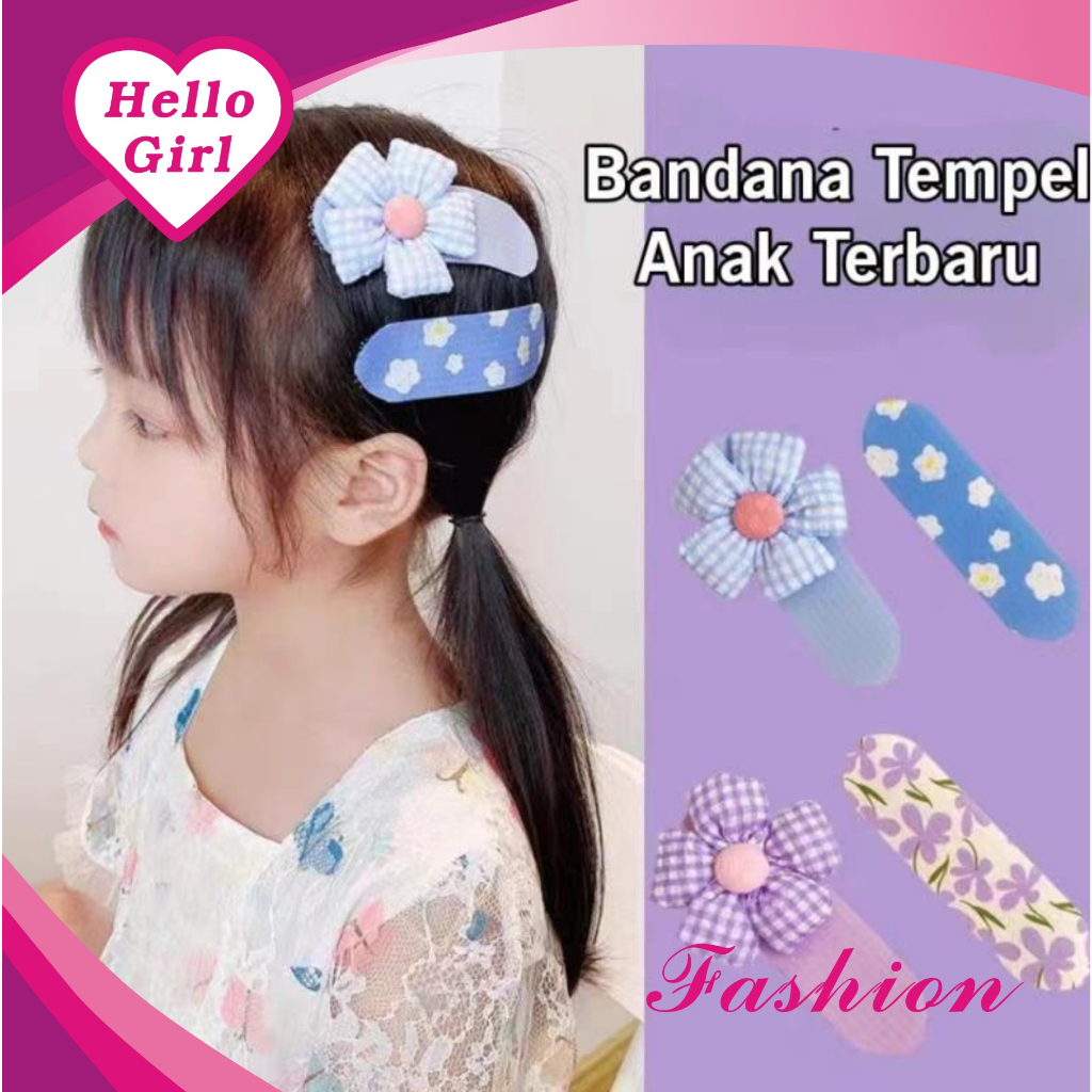 Detail (Hello Girl)F12 Bandana Tempel Anak Penahan Poni Rambut Motif Bunga Pita Import