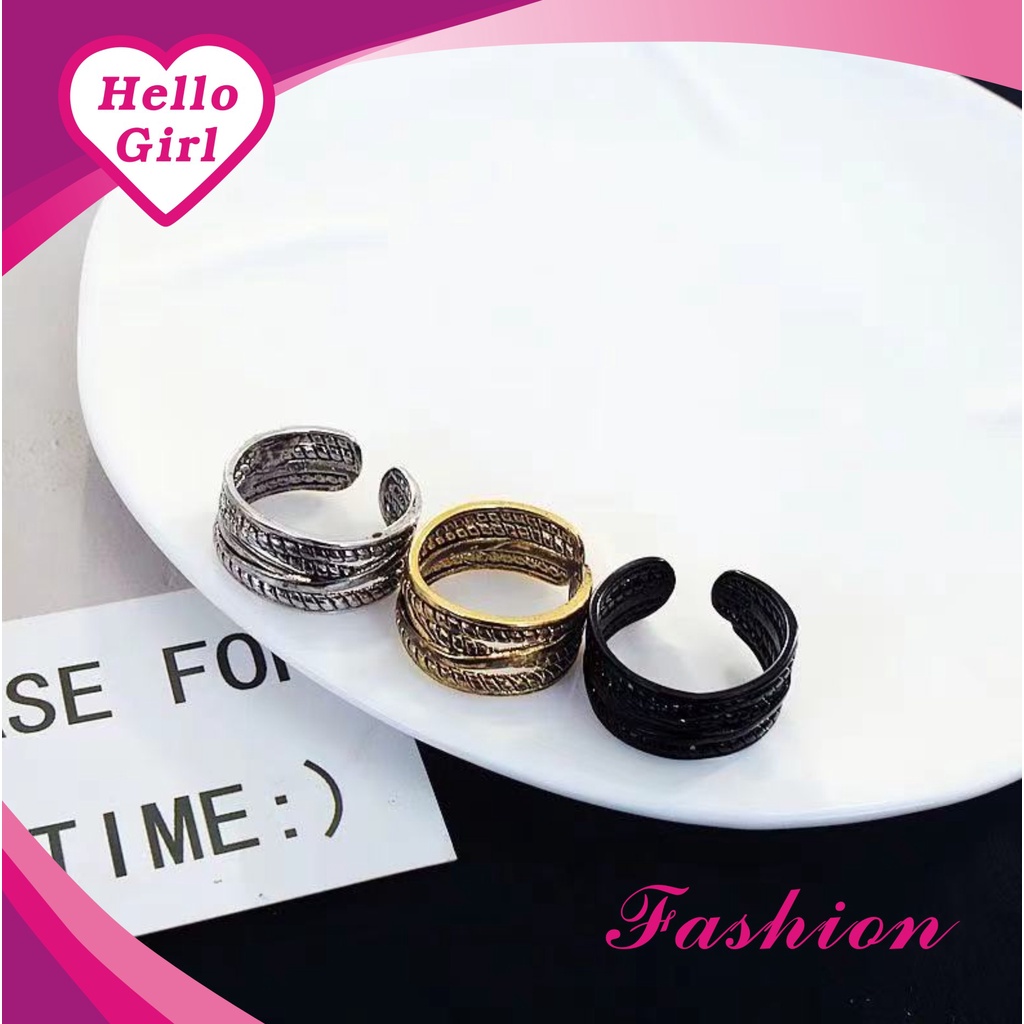 Detail (Hello Girl)J07 Cincin Silver Model Terbuka Motif Tali Tambang Wanita Import