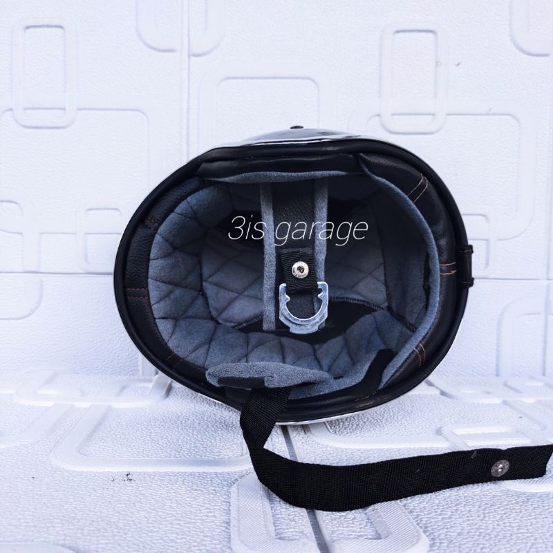 Detail HELM BOGO CUSTOM SLIMM HEAD RETRO KLASIK BUSA KULIT LIST CROM